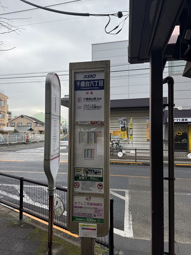 東京テラス出入口の目の前のバス停「千歳台六丁目」
