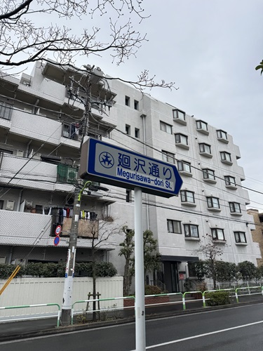 「廻沢通り」と書かれた道路標識