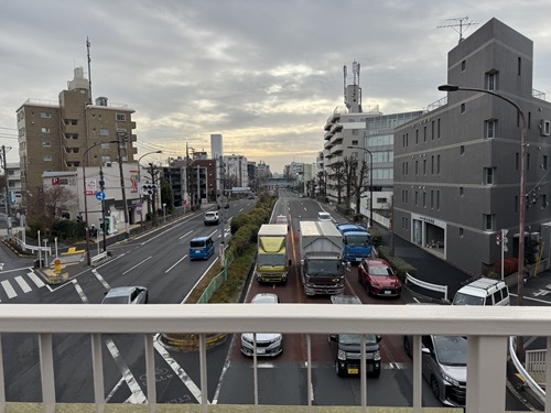 歩道橋から環八を望む